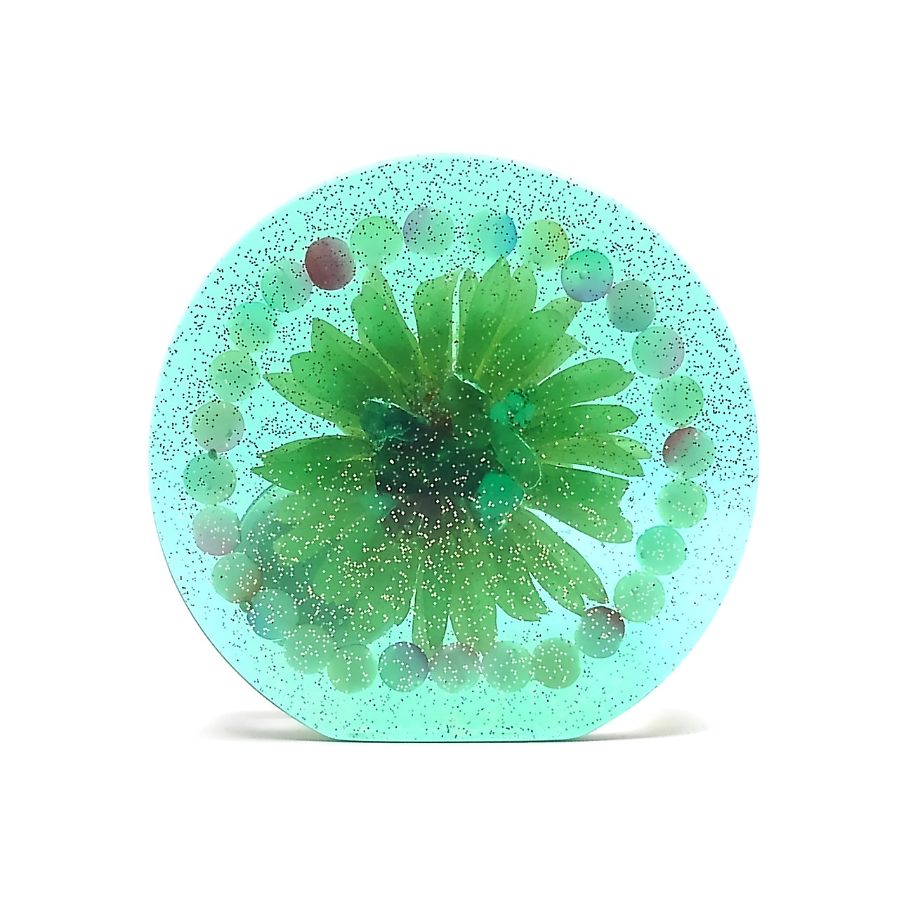 ベースに緑色を配色しラメを封入していますのできらきらと輝きます。