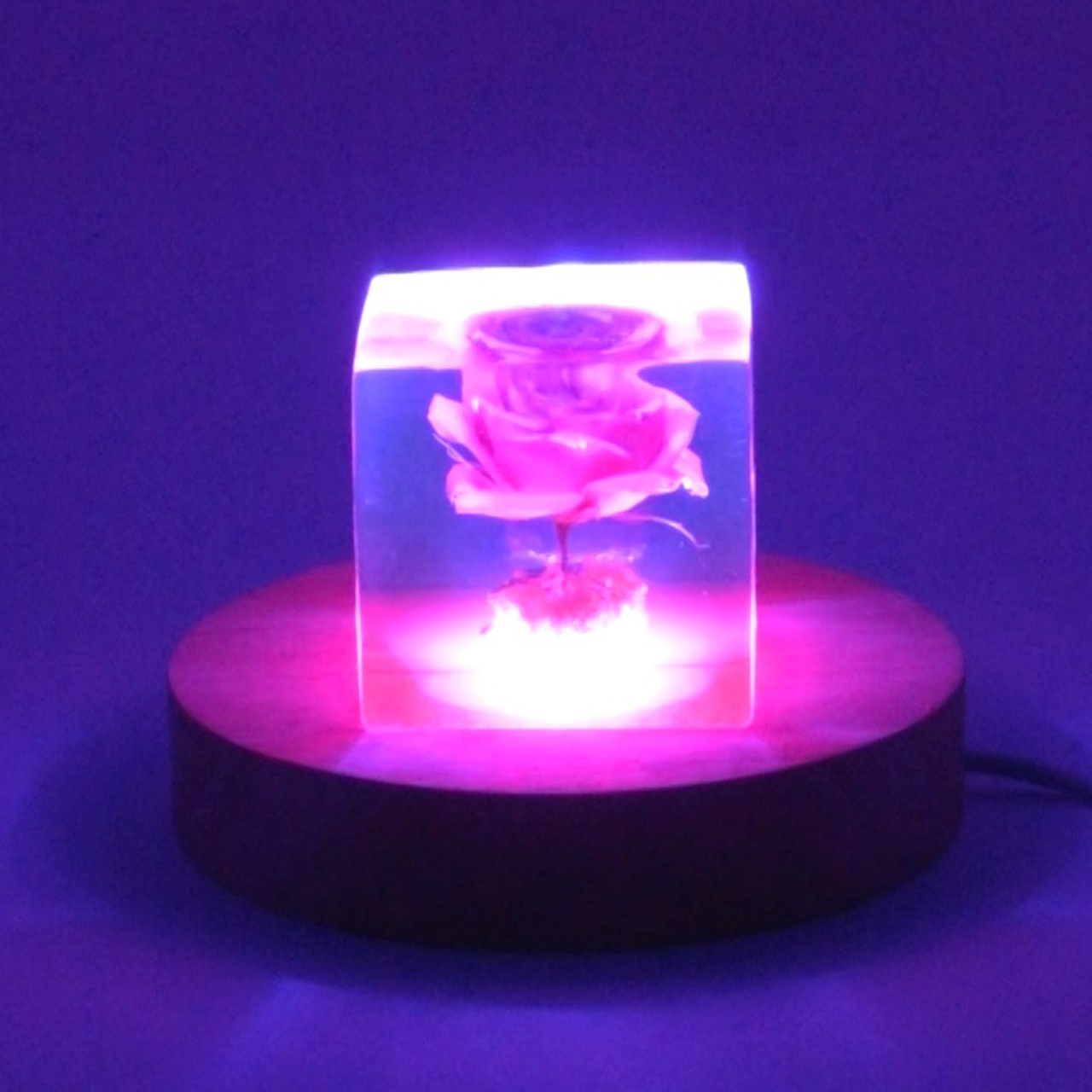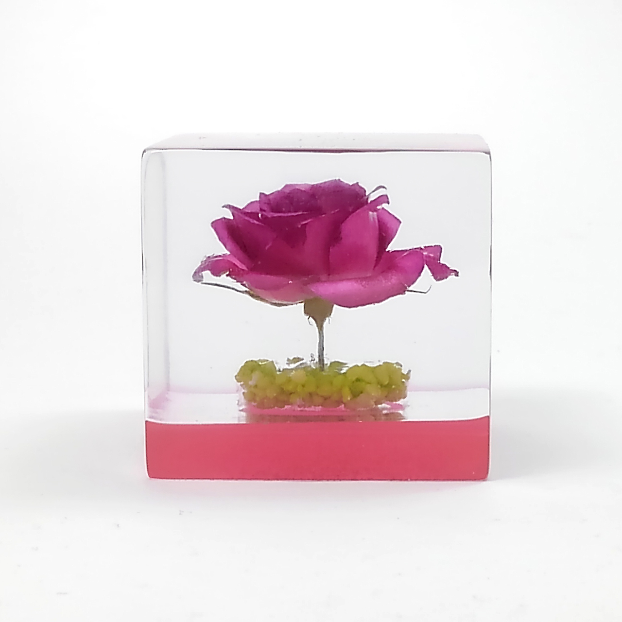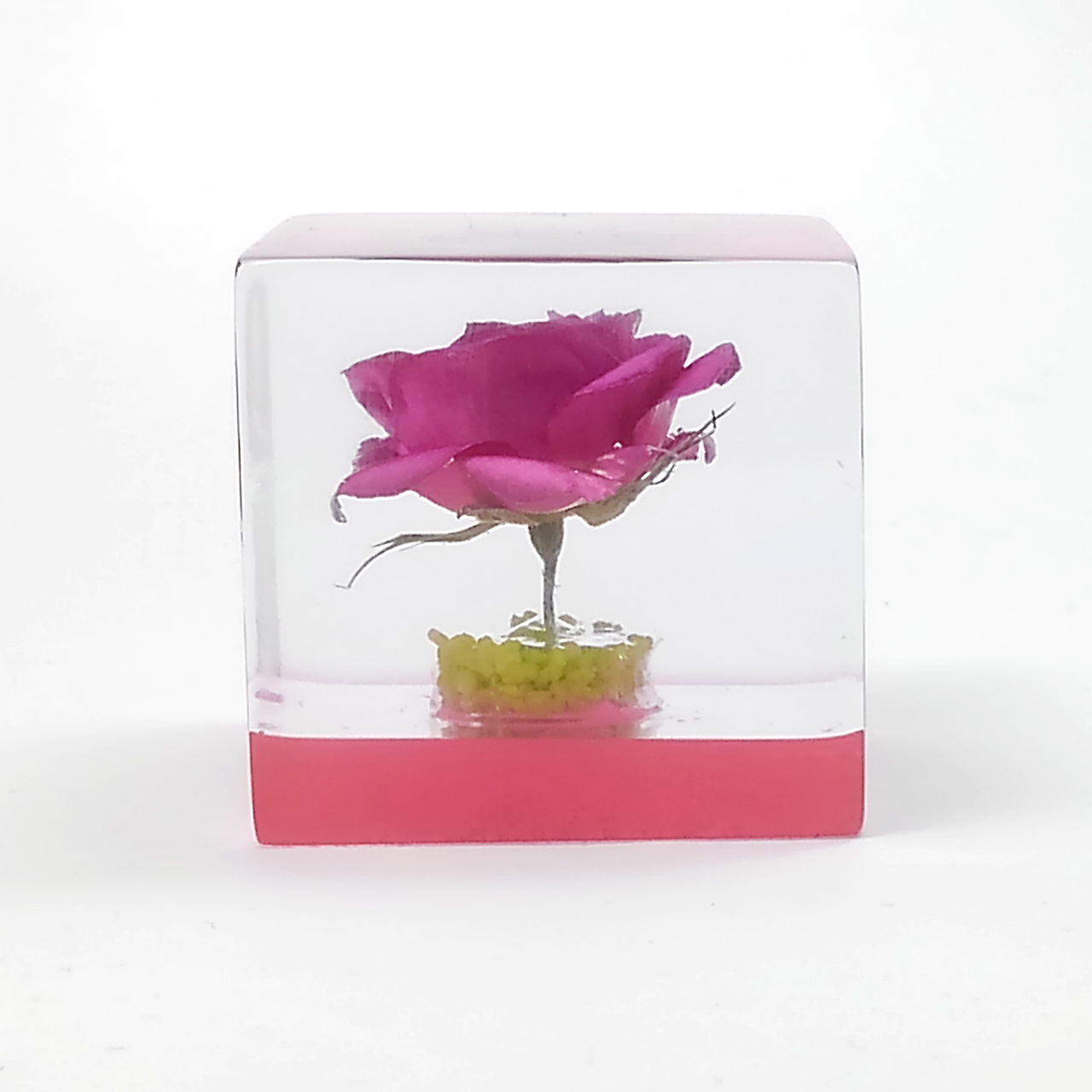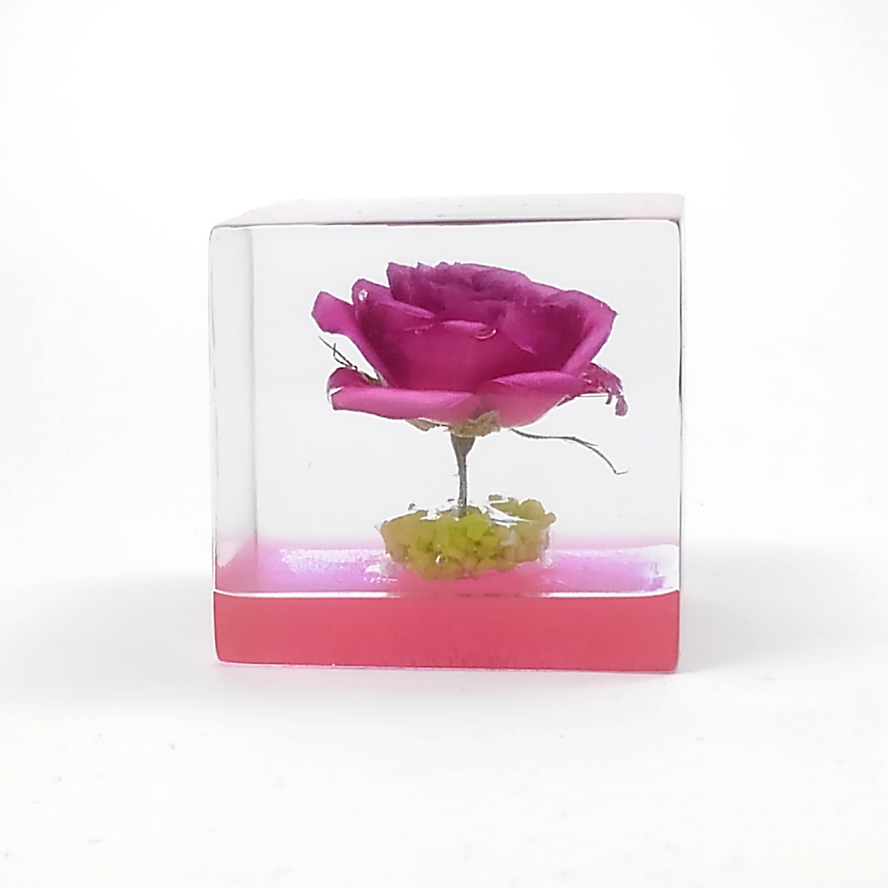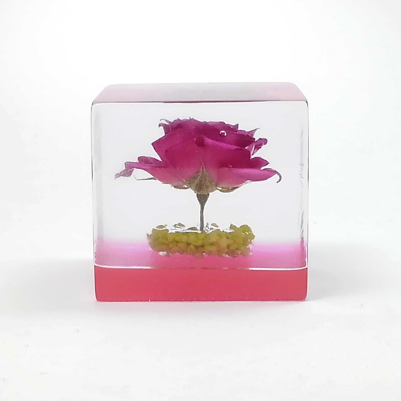 ドライフラワーバラをエポキシレジンに封入したキューブです。