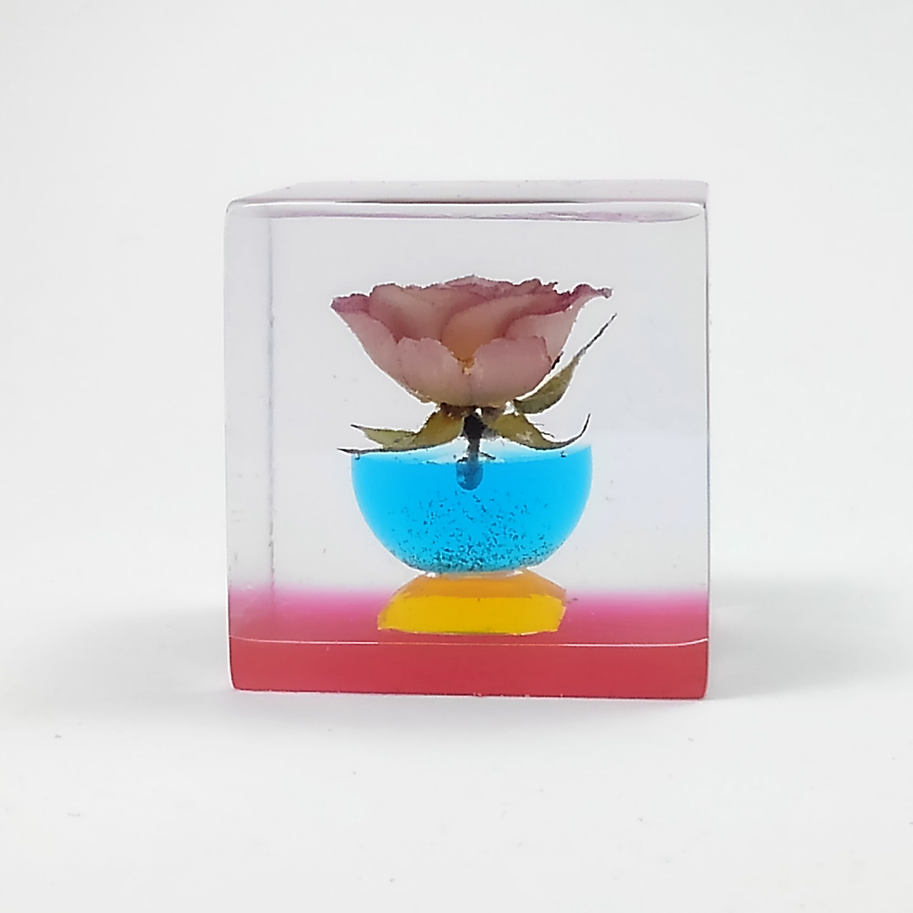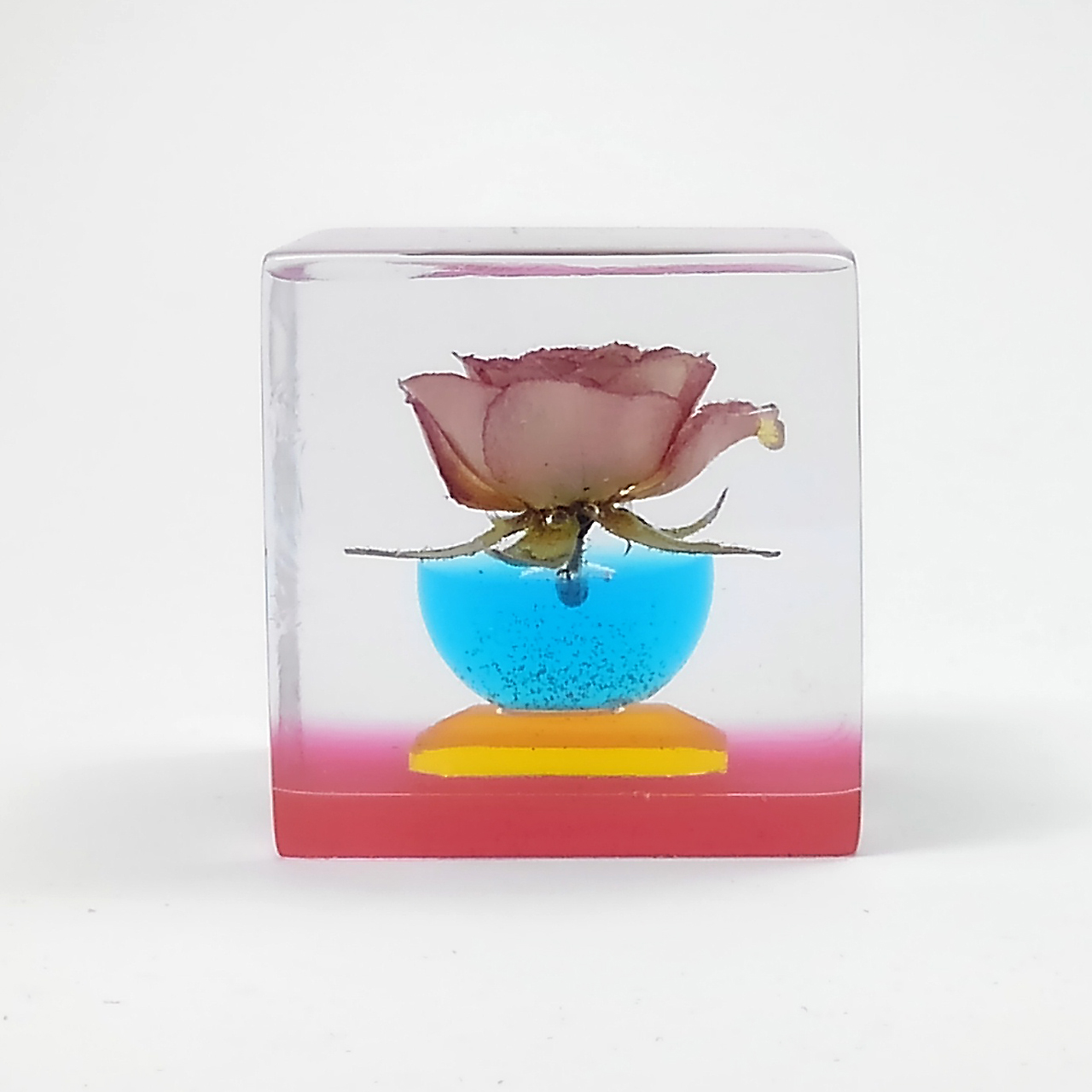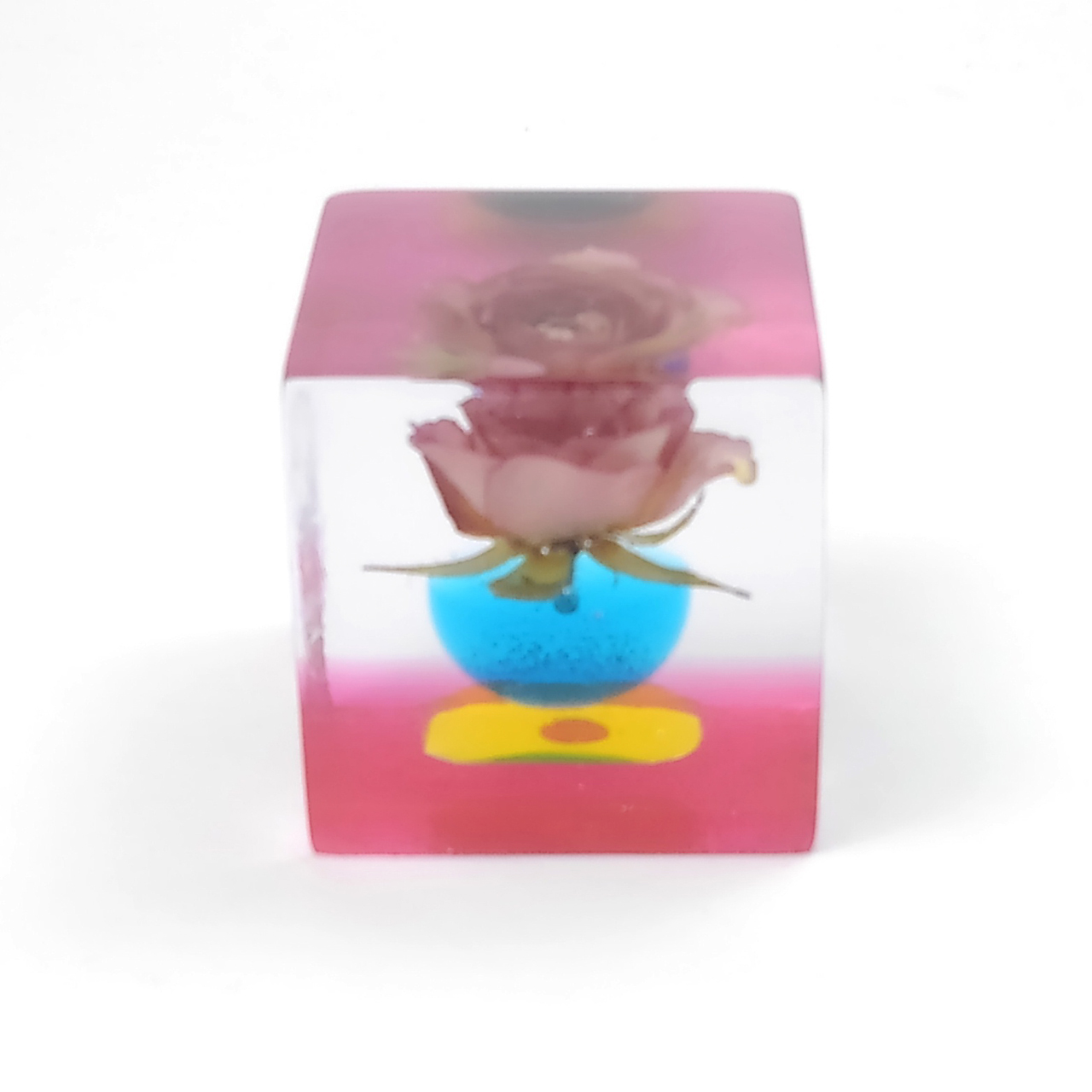 ドライフラワーバラをエポキシレジンに封入したキューブです。