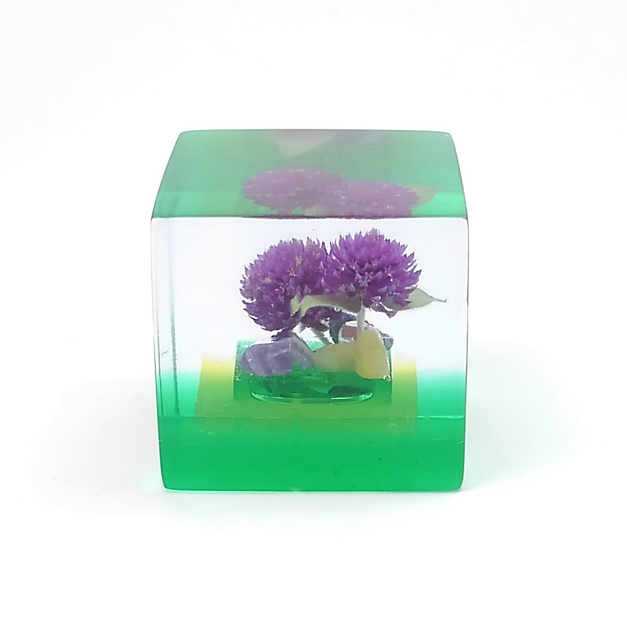 ドライフラワー千日紅をエポキシレジンに封入したキューブです。