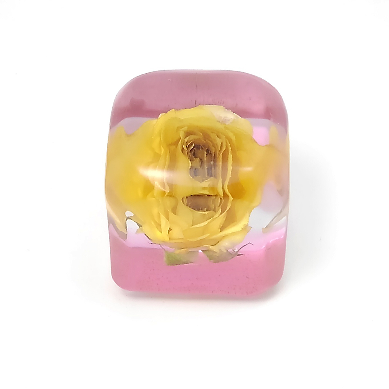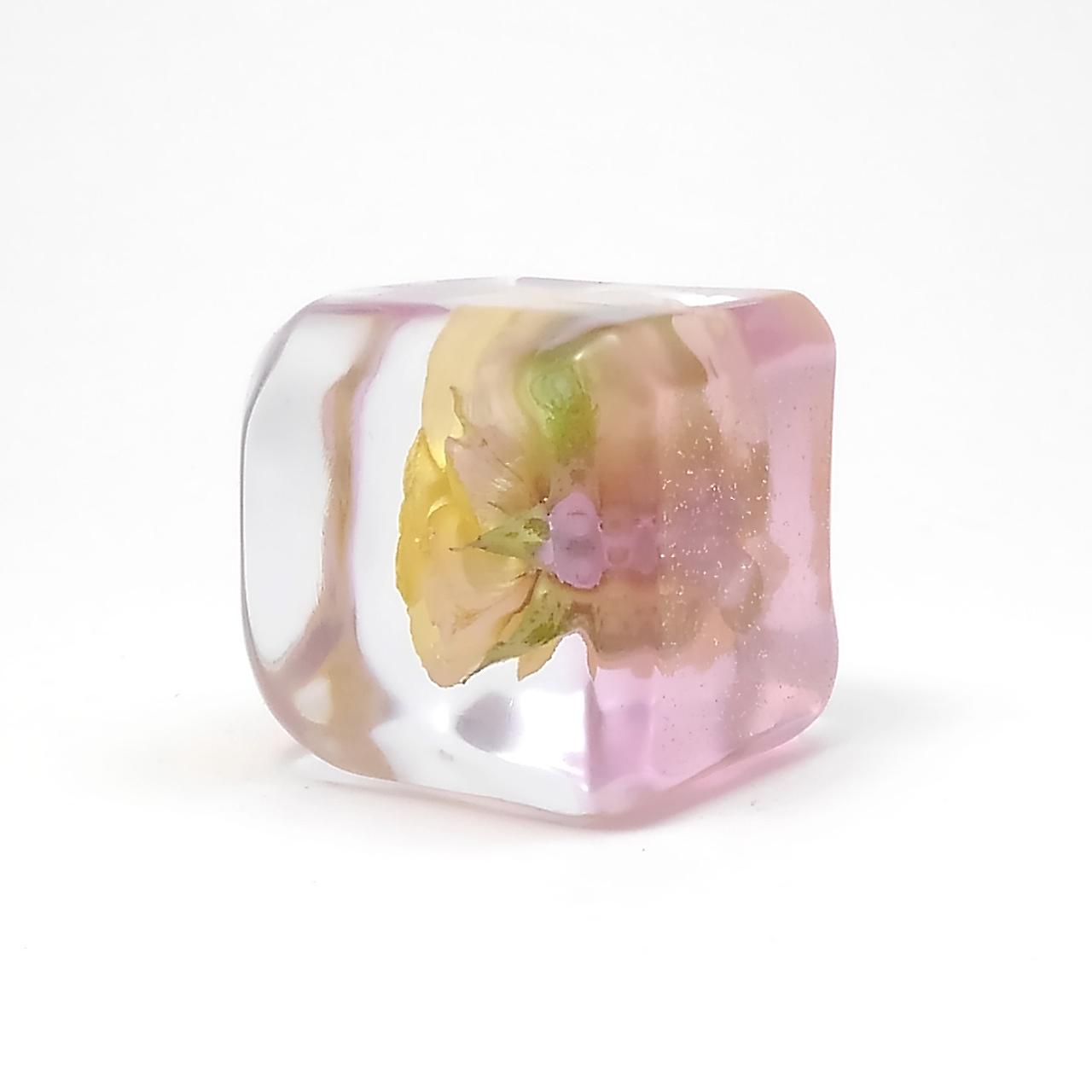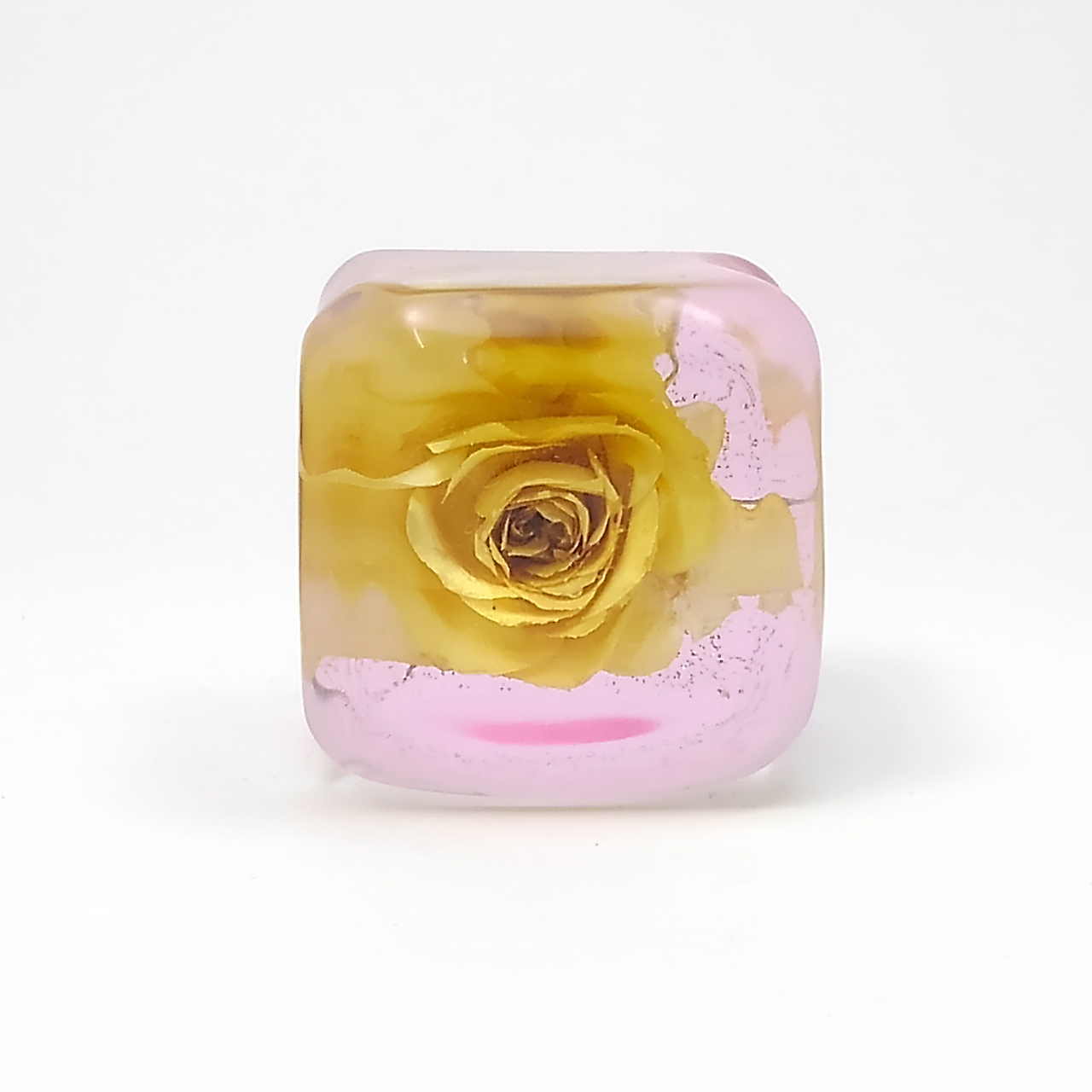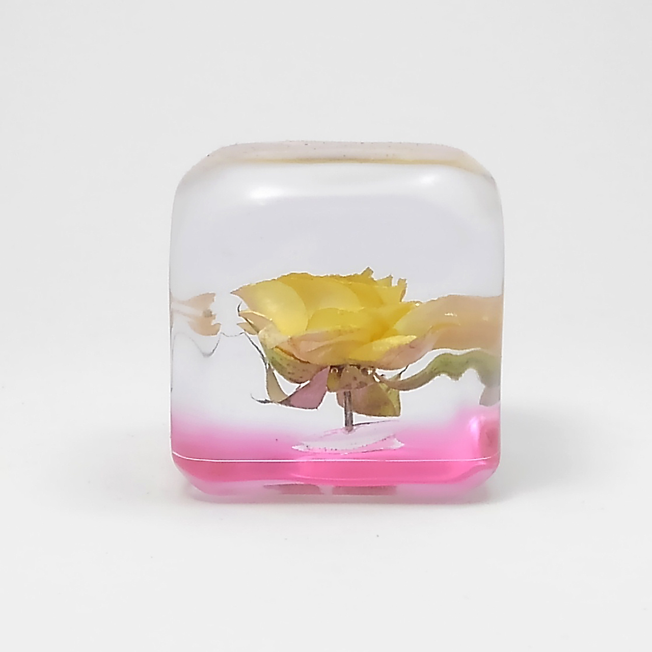 ドライフラワーバラをエポキシレジンに封入したキューブです。