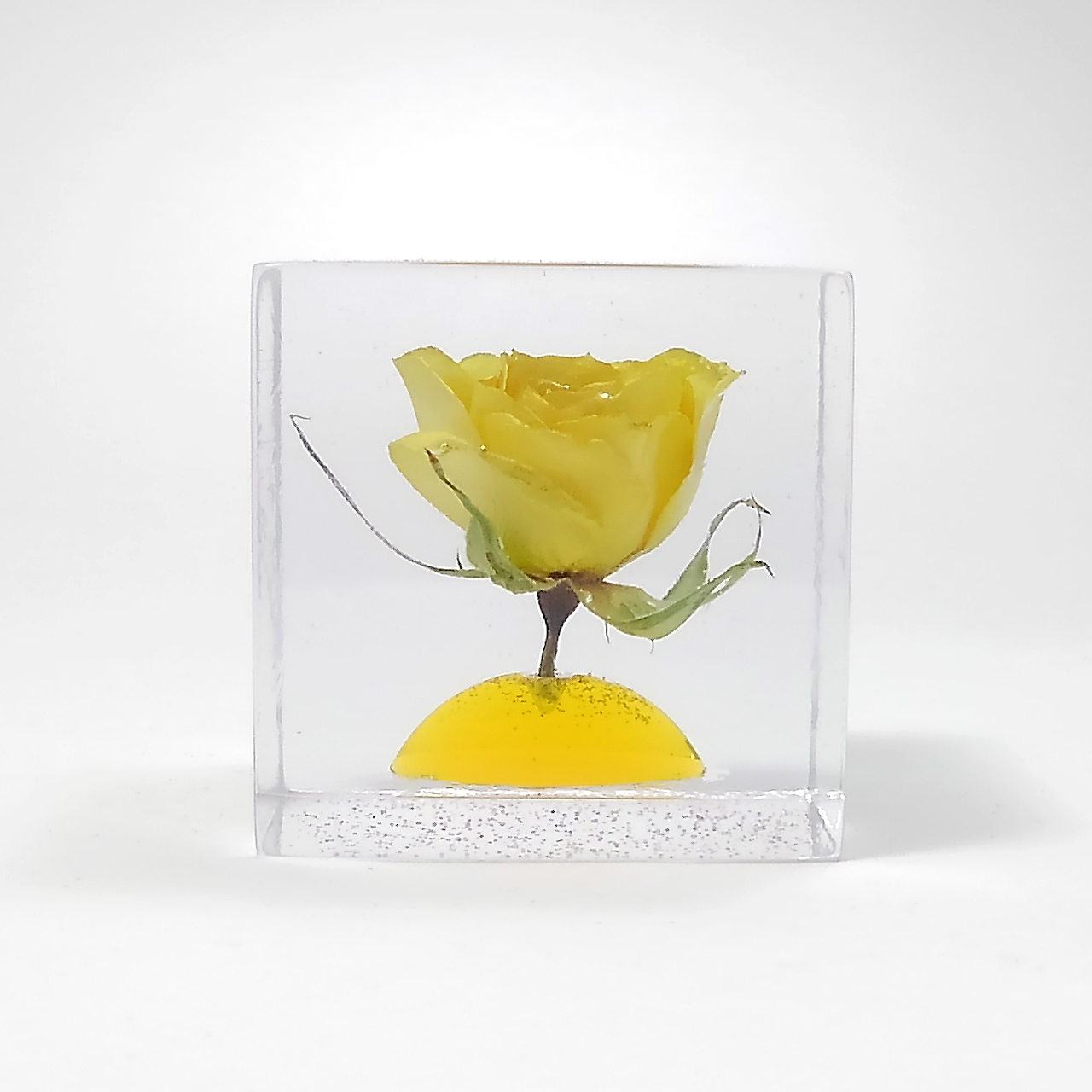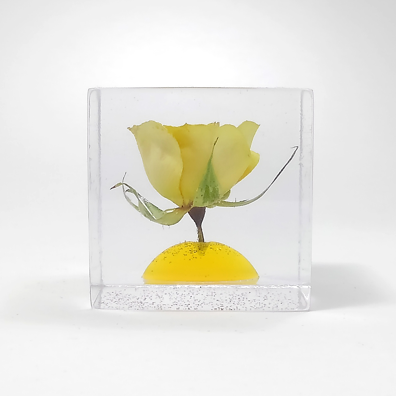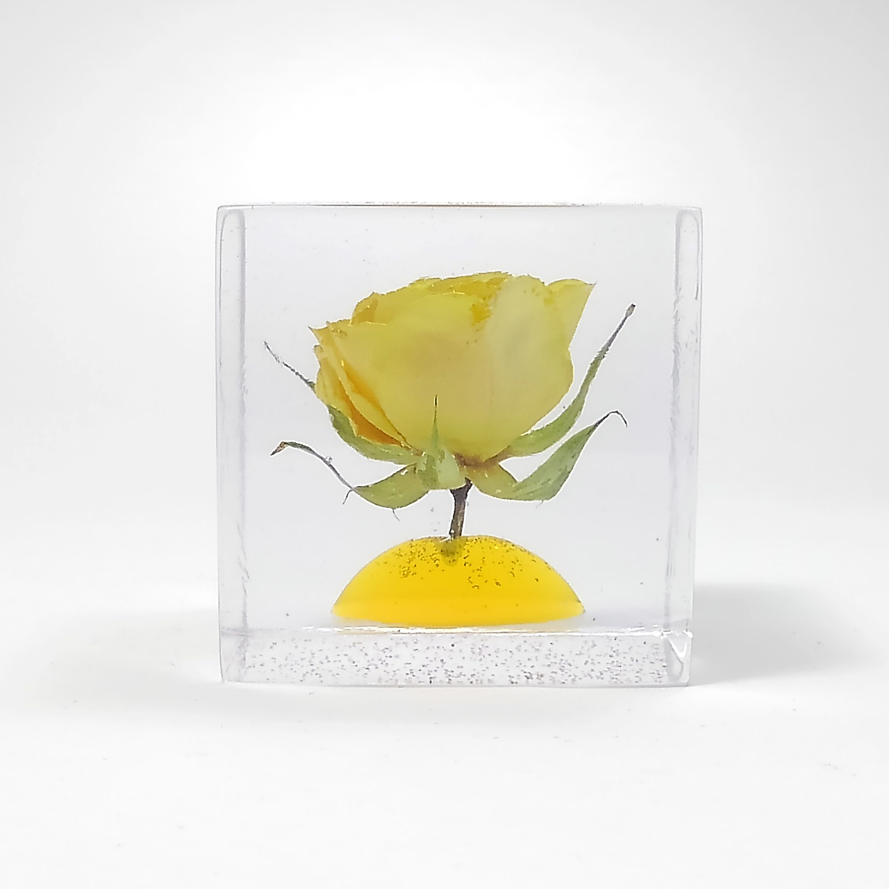 レジン・フラワーキューブ・バラ-黄fc017