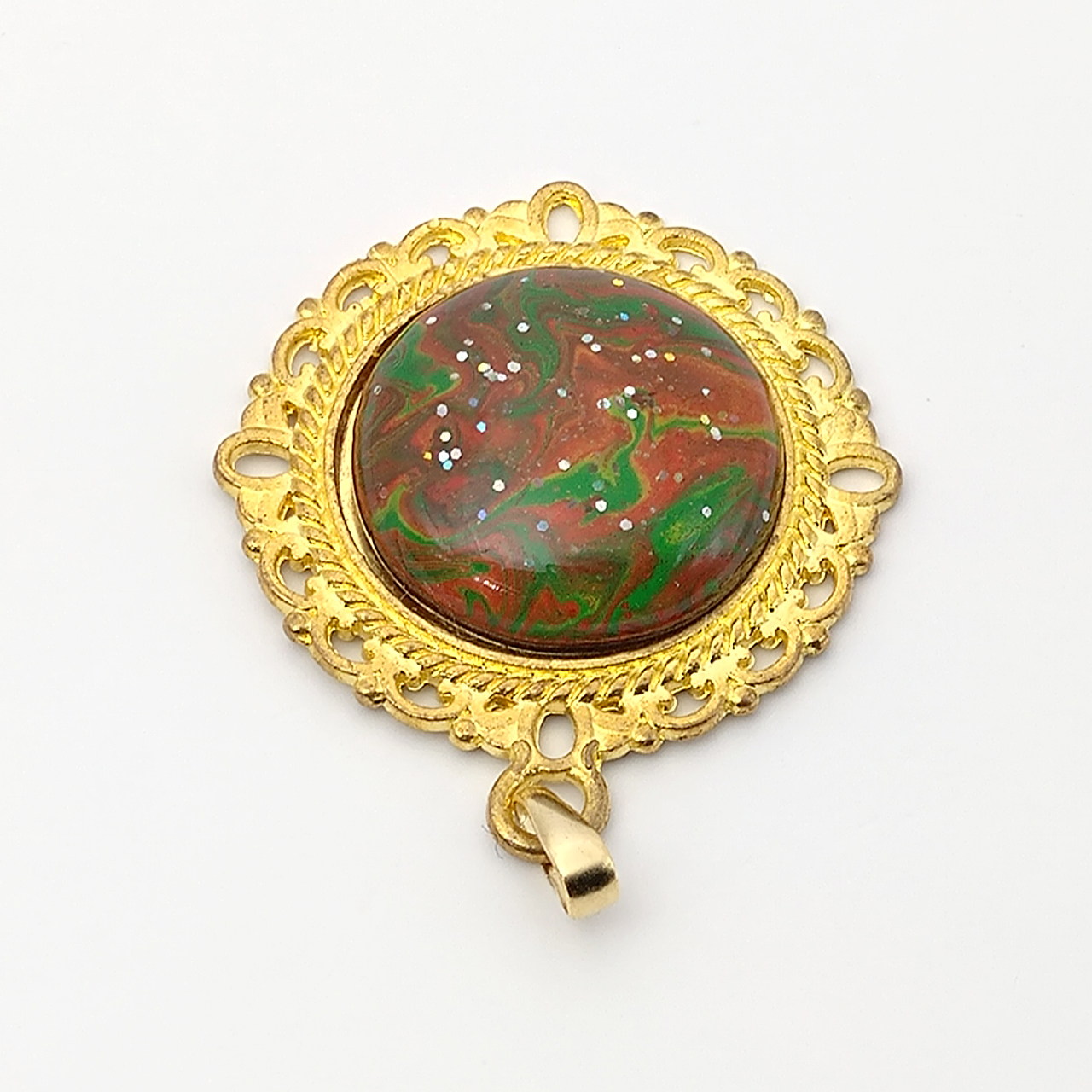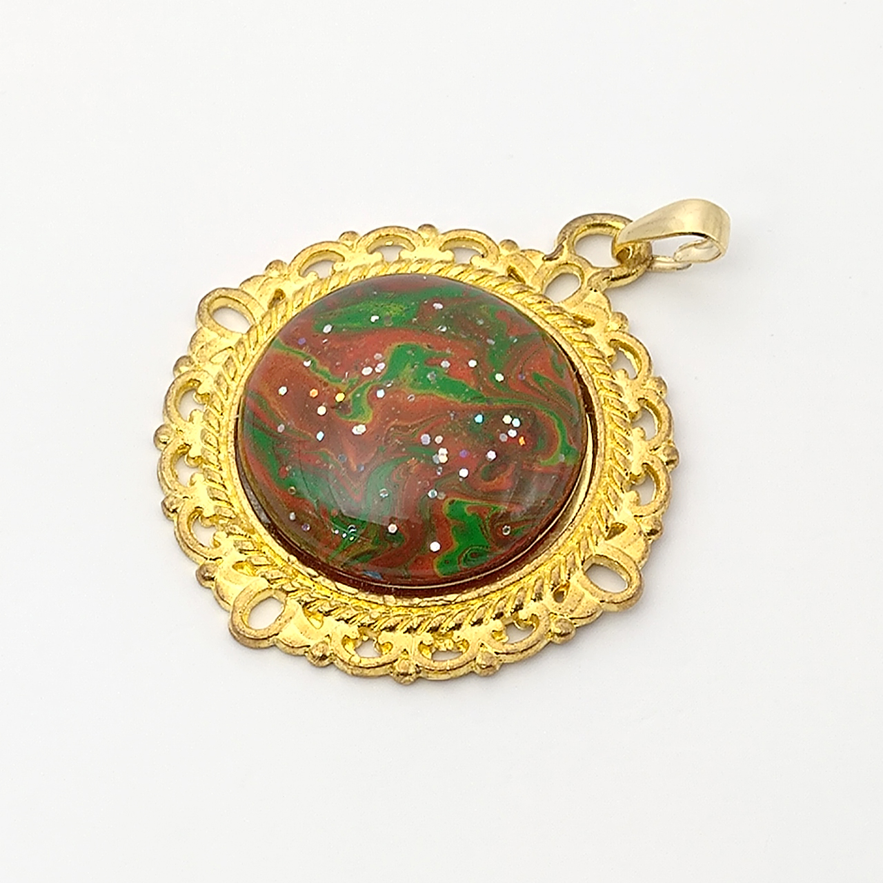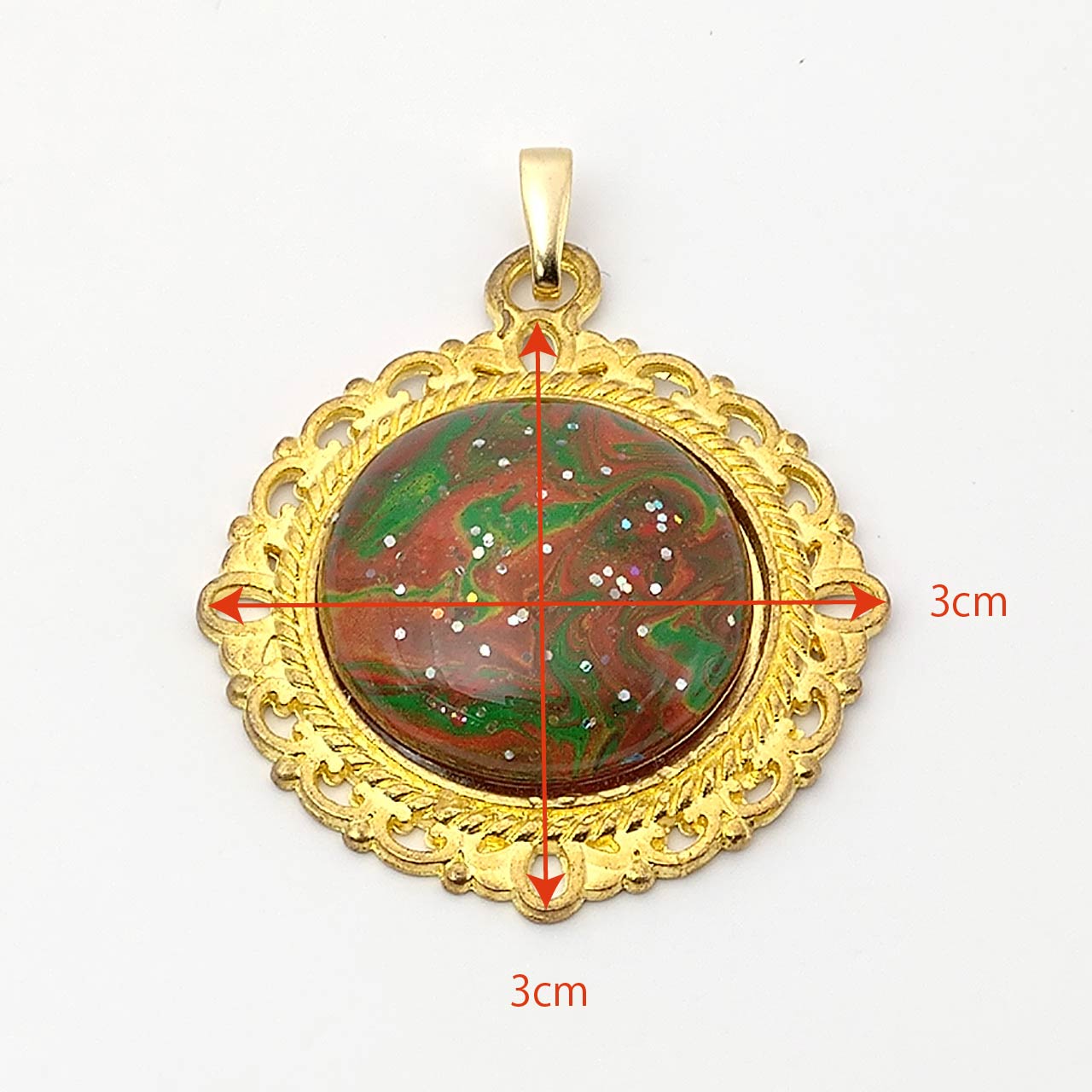 アートを身に纏う!ポーリングアートをレジンに封入した丸形ペンダントアクセサリーです。