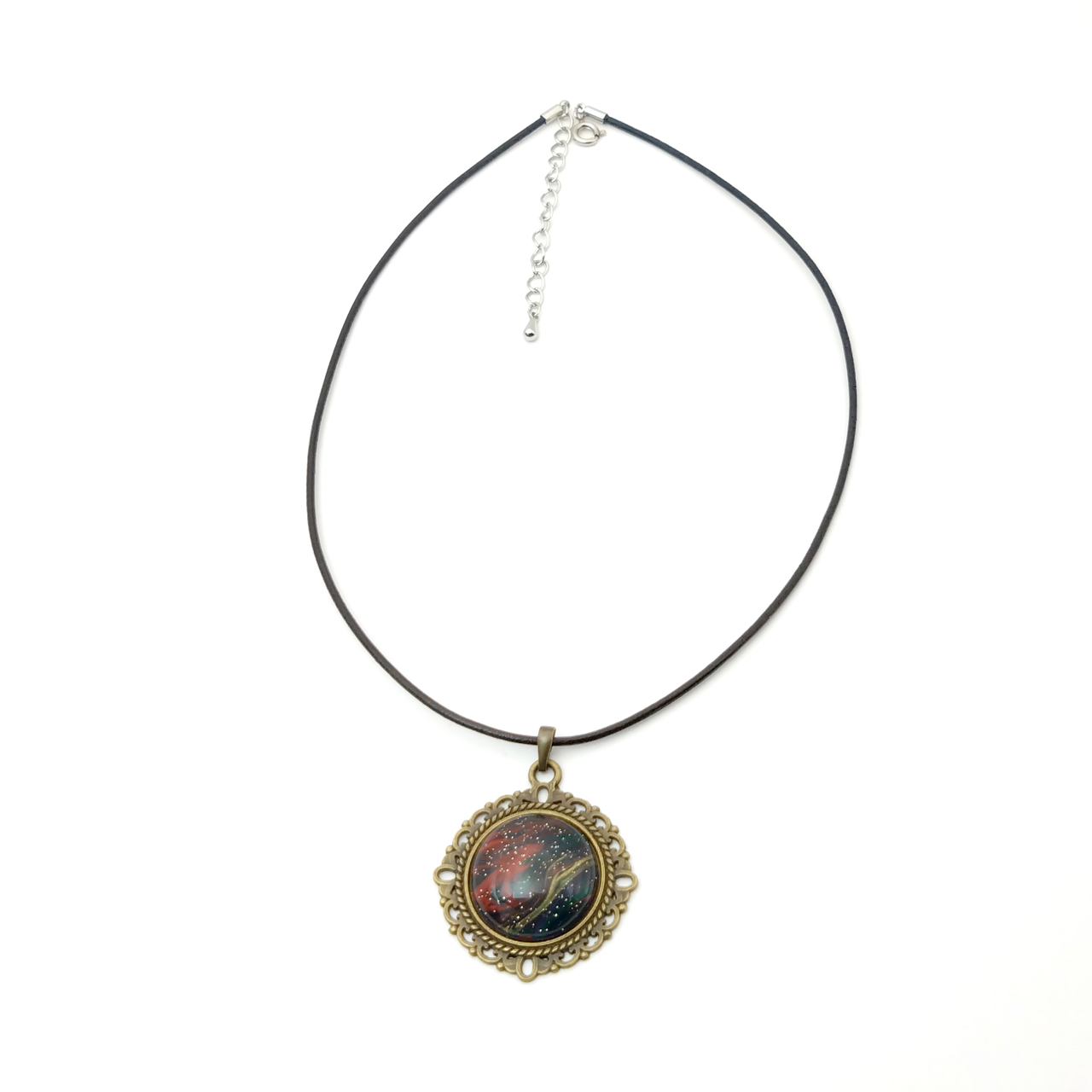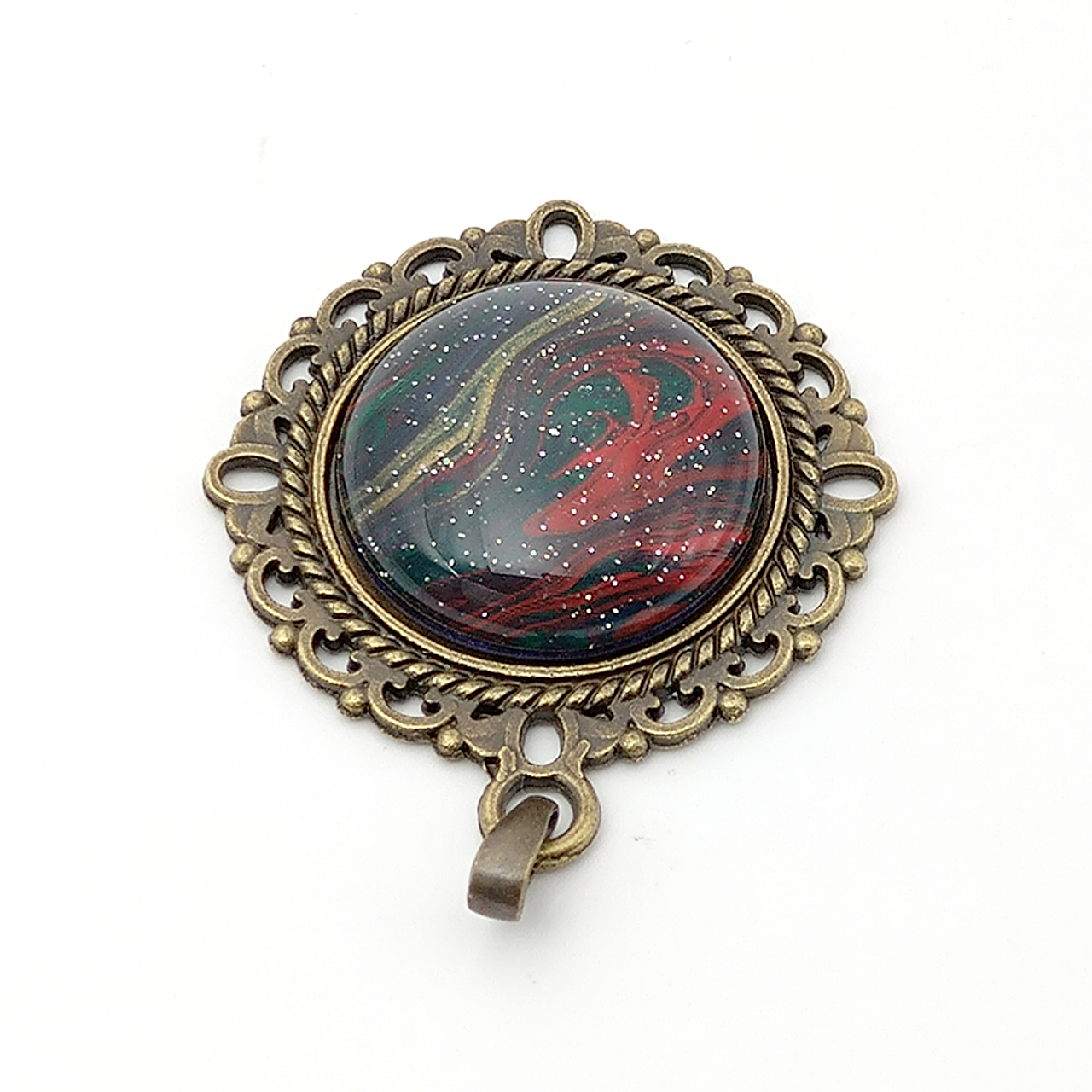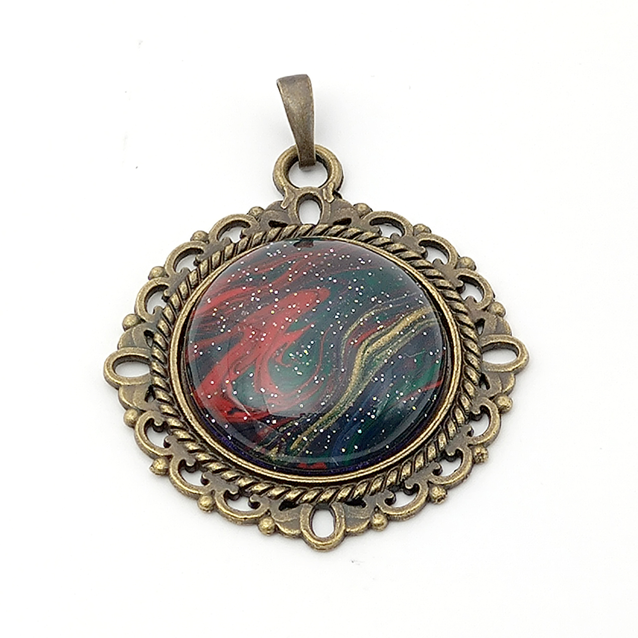 アートを身に纏う!ポーリングアートをレジンに封入した丸形ペンダントアクセサリーです。