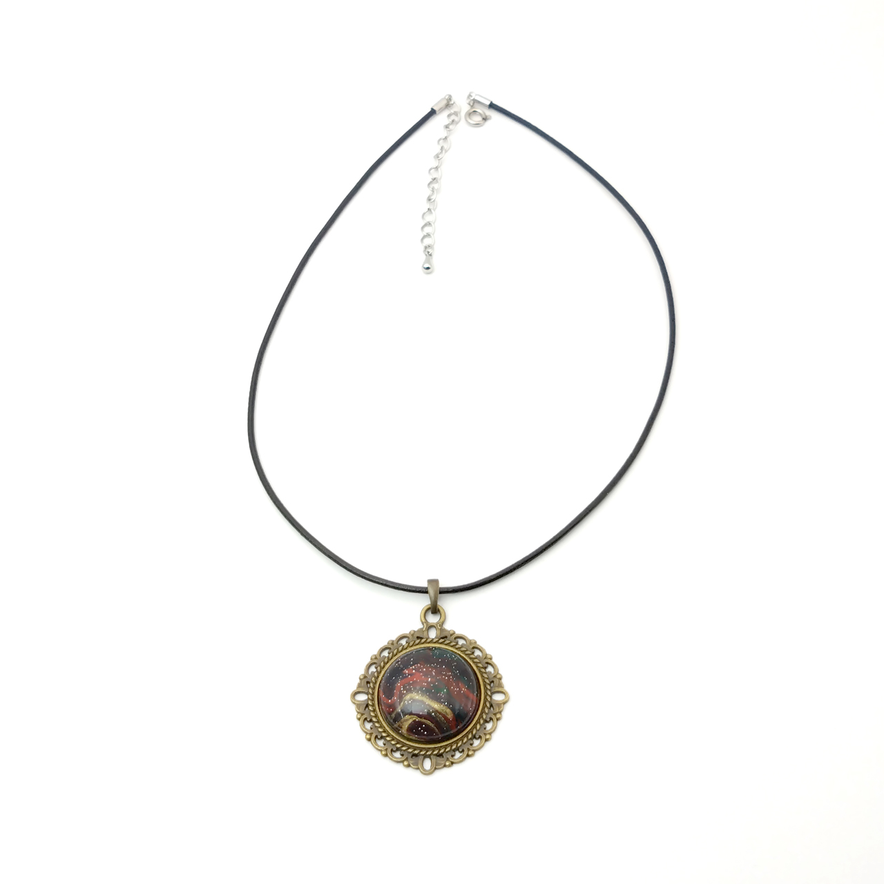 アートを身に纏う!ポーリングアートをレジンに封入した丸形ペンダントアクセサリーです。