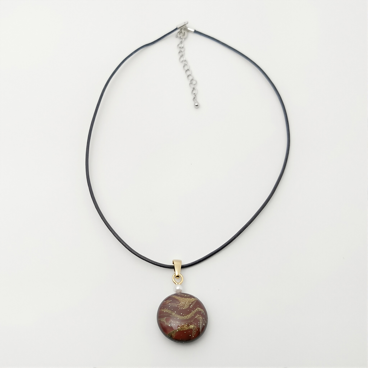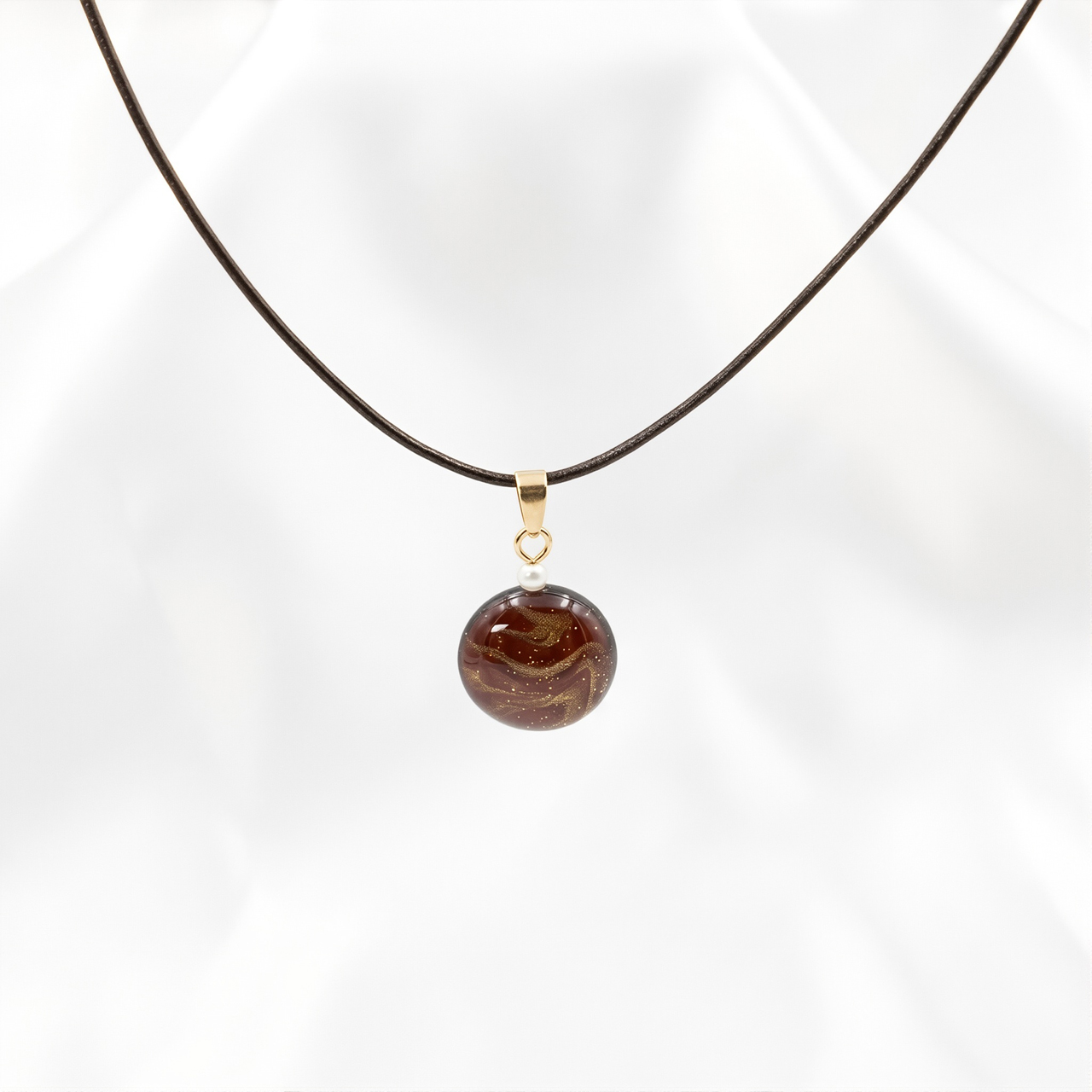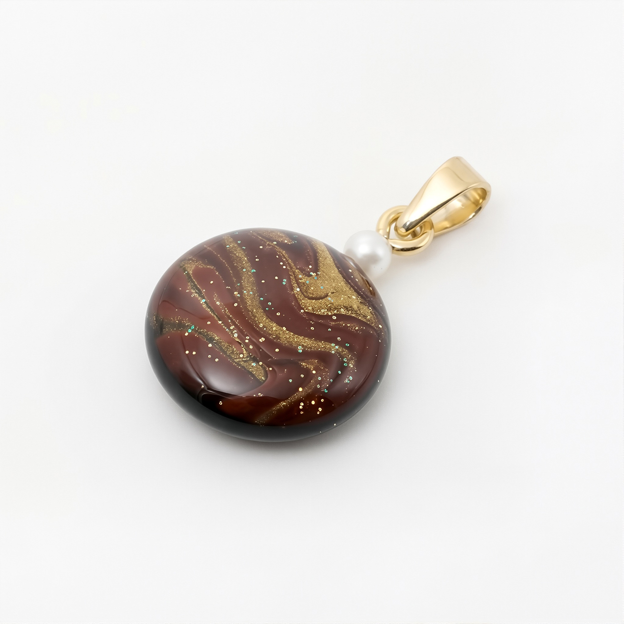 アートを身に纏う!ポーリングアートをレジンに封入した丸形ペンダントアクセサリーです。