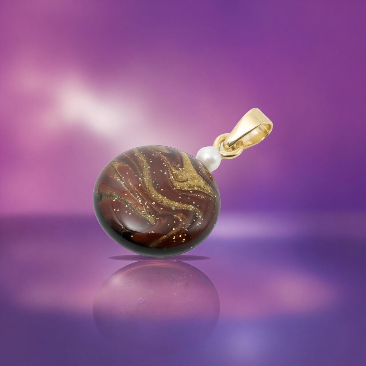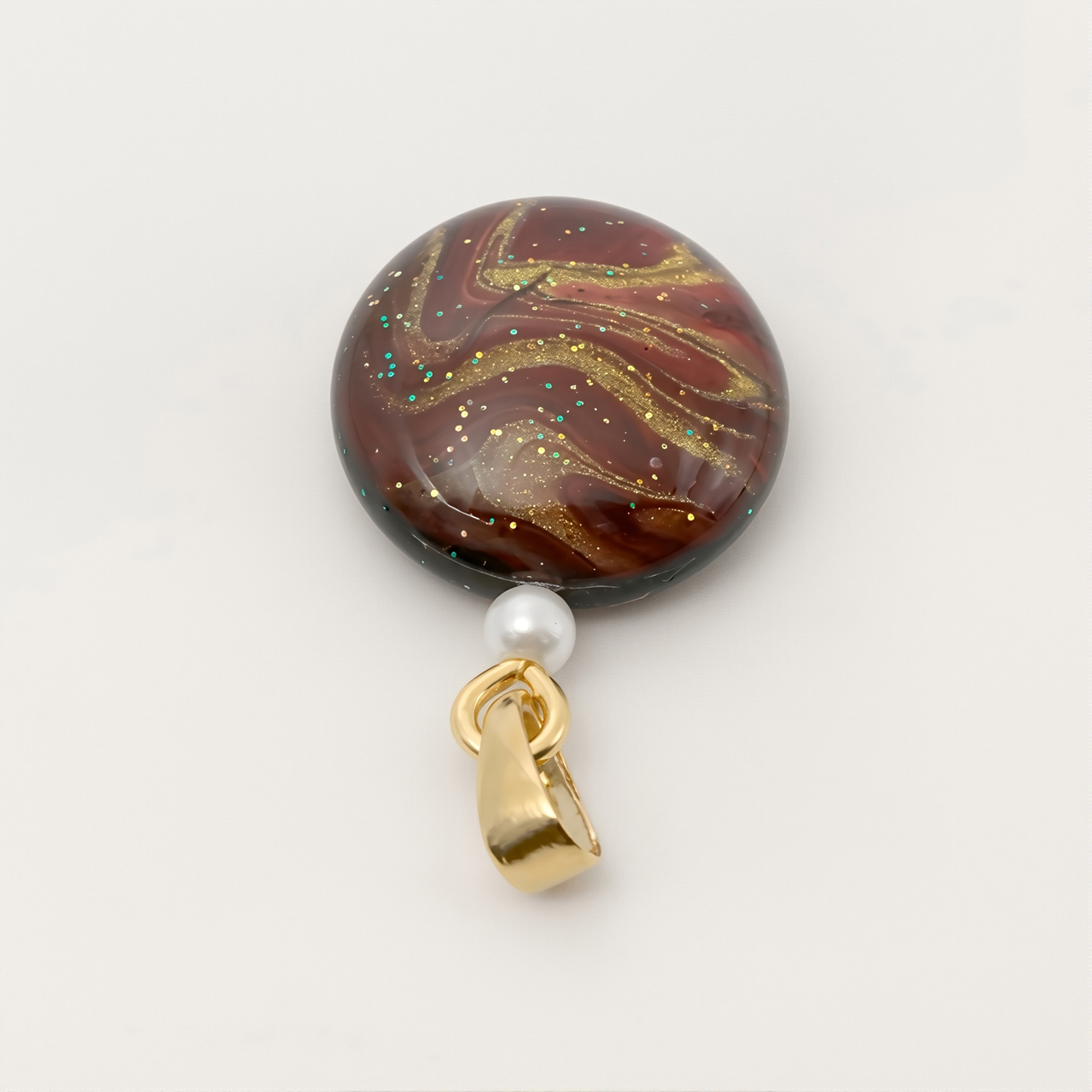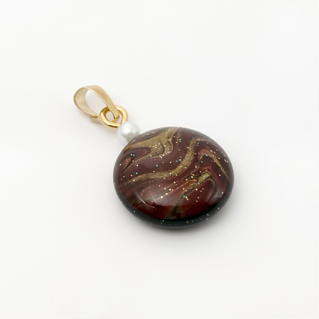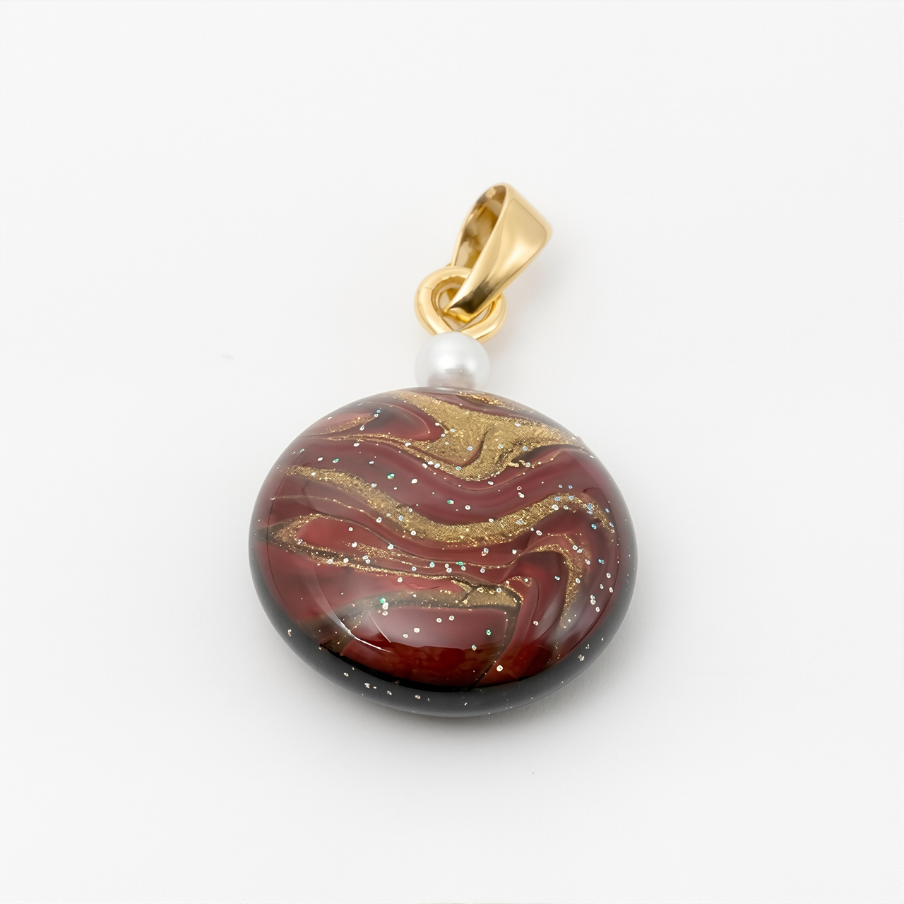 アートを身に纏う!ポーリングアートをレジンに封入した丸形ペンダントアクセサリーです。
