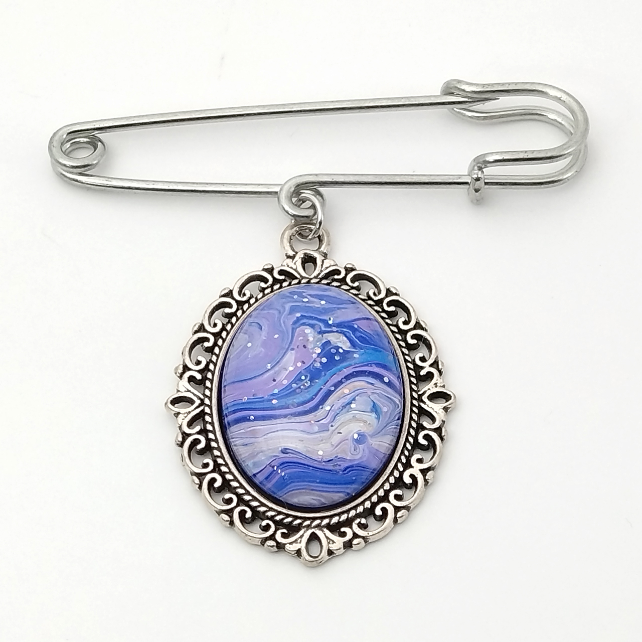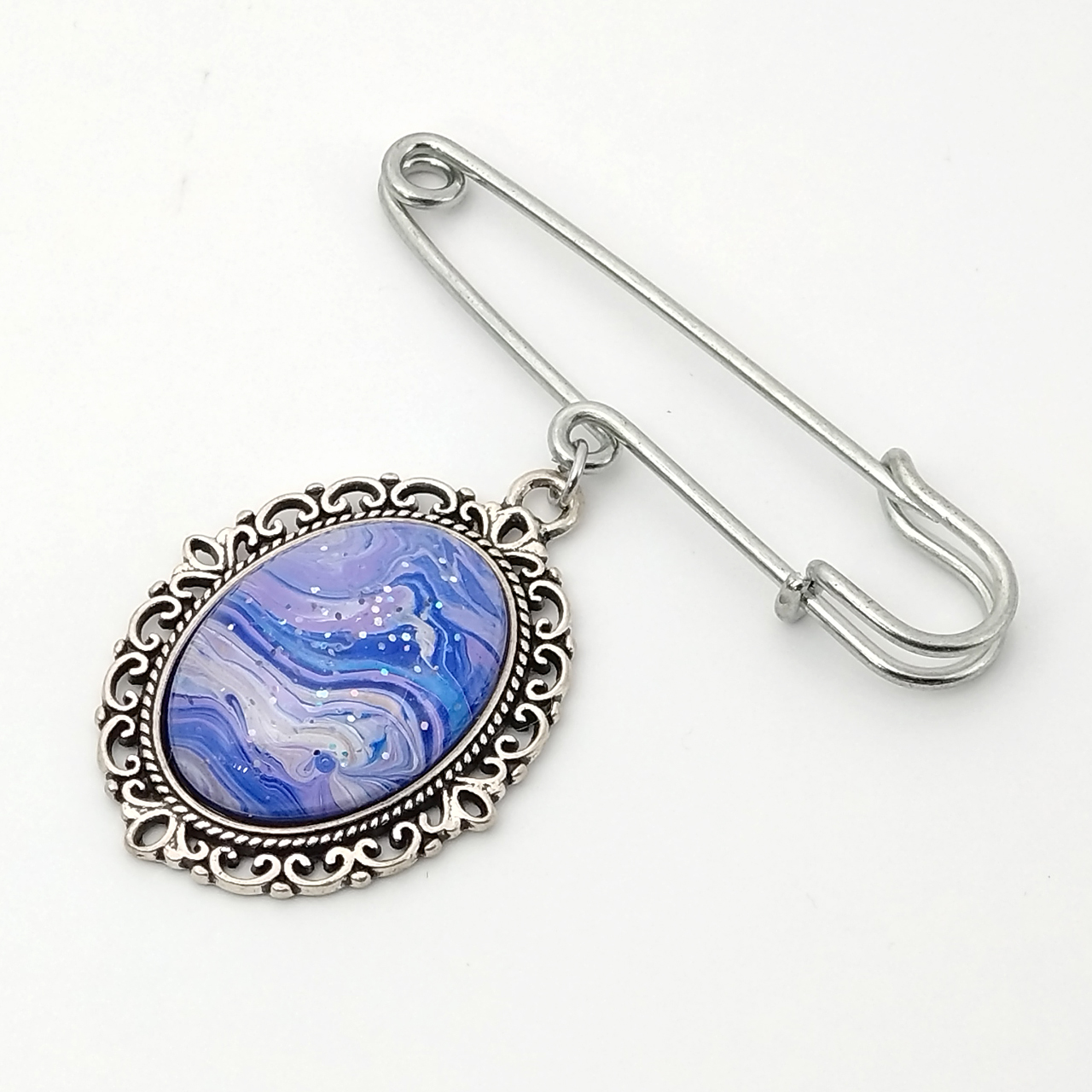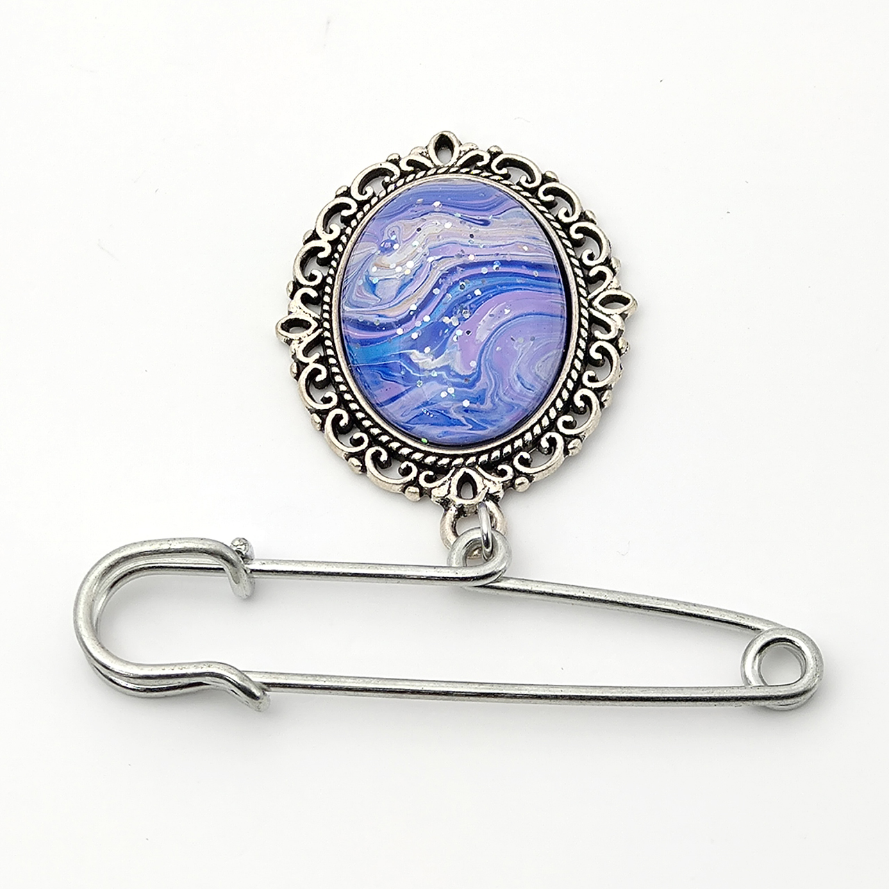 アートを身に纏う!ポーリングアートをレジンに封入した楕円形ブローチアクセサリーです。