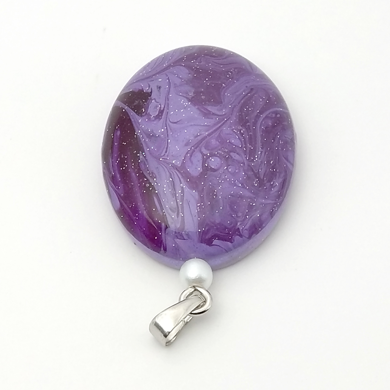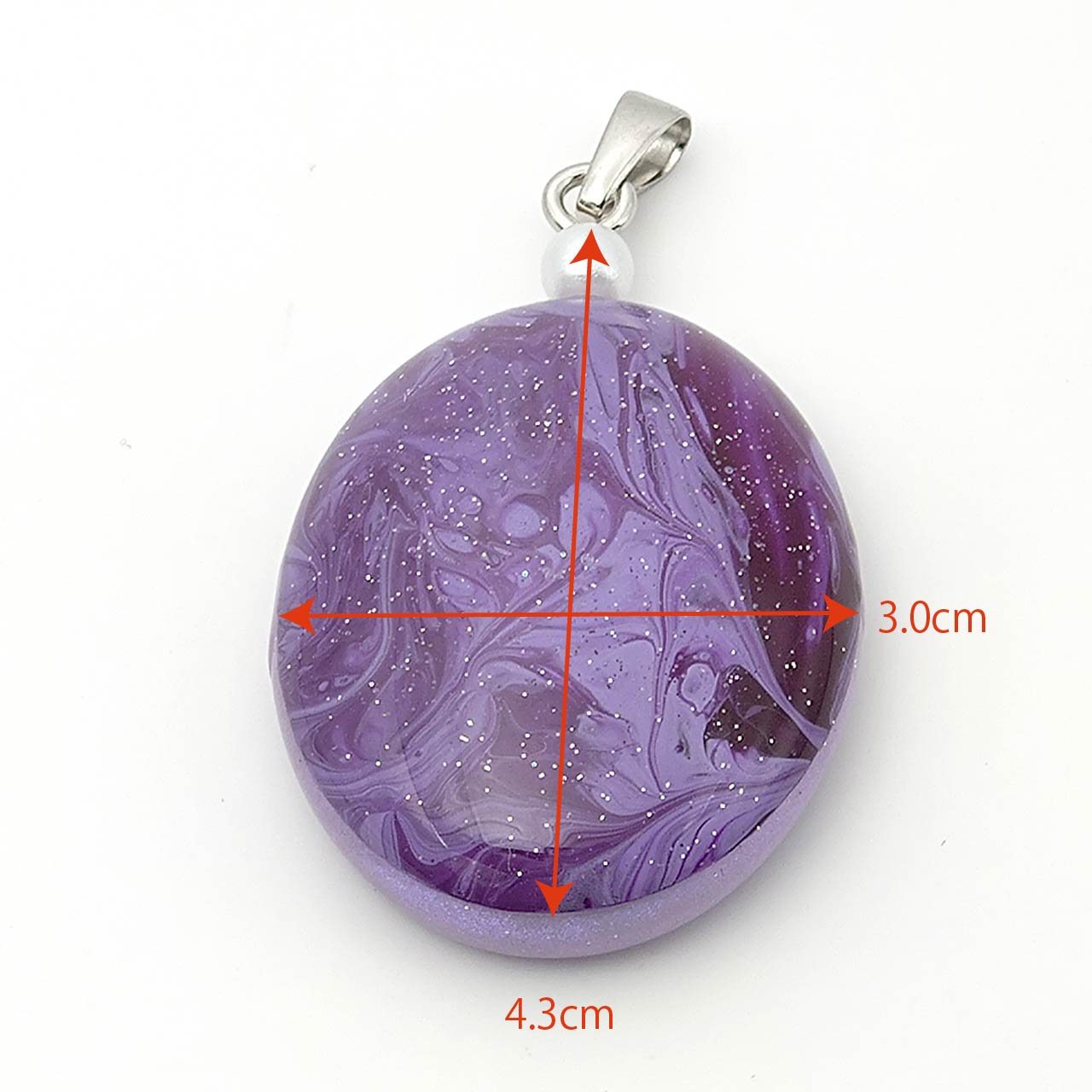 アートを身に纏う!ポーリングアートをレジンに封入した大型楕円形ペンダントアクセサリーです。