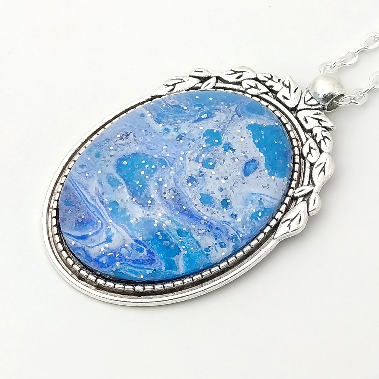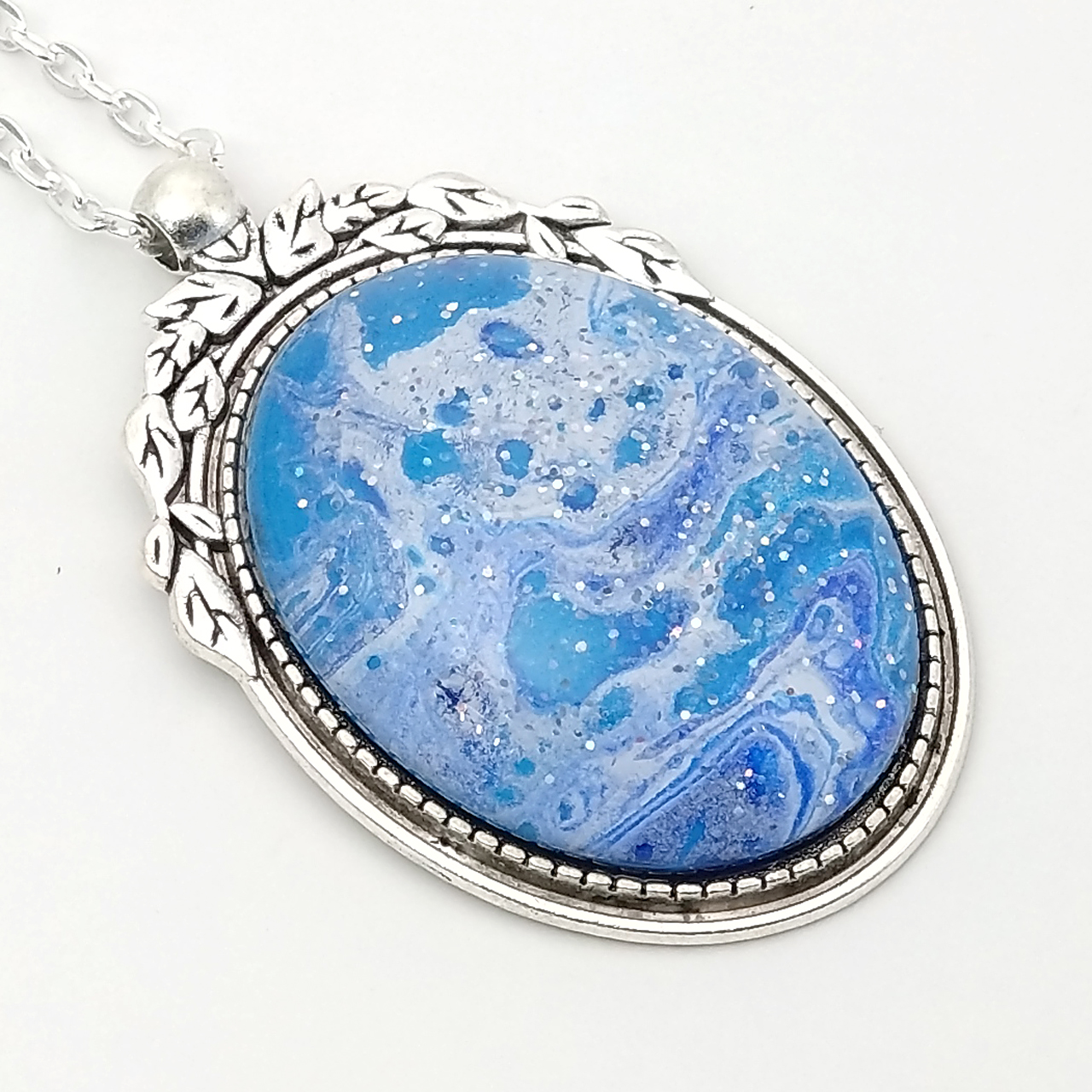 ポーリングアートアクセサリー・ペンダント楕円形・オーシャンpaa-oc004