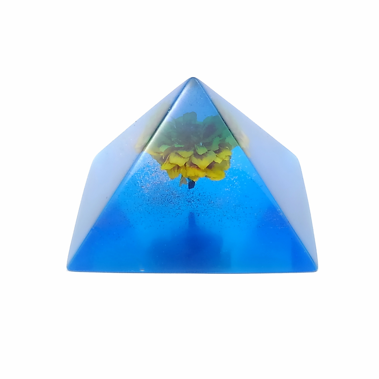 ドライフラワーマリーゴールドをエポキシレジンに封入したピラミッドです。